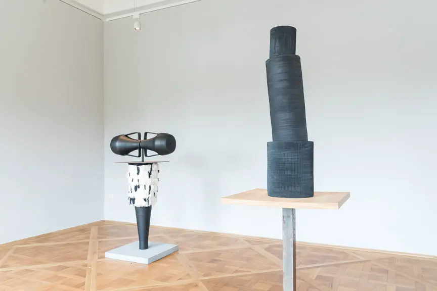 Linde Burkhardt calls her black ceramics a “sculptural diary”. We might see them quasi as a poetic diary. In an interplay with pedestals sensitively attuned to the objects she creates installations evoking the fascination of Portugal, which inspired these works. The black ceramics were all made in the rural region of Tondela-Molelos in Portugal.